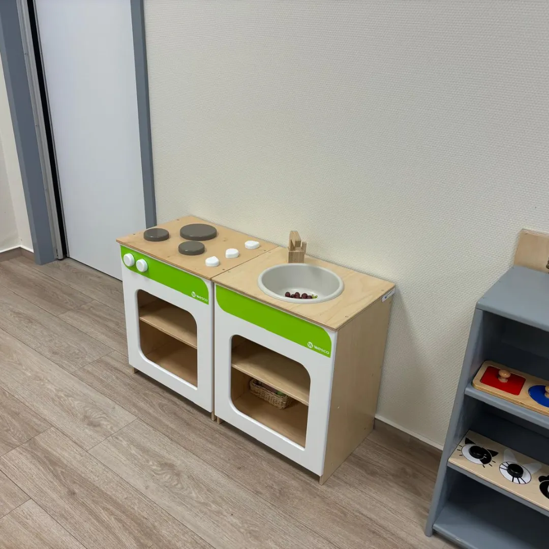 Chez KidsCare, les espaces de jeux sont au service de l’imagination des enfants. Dans le coin dinette, ils adorent élaborer des recettes, préparer des soupes, certains tiennent un vrai petit restaurant ! En plein milieu de la section se tient une structure de jeux aux airs de château fort. Chevaliers, princesses et dragons aiment s’y retrouver et s’inventer des histoires rigolotes.