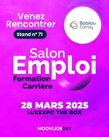📢 Nous avons une grande nouvelle à partager ! Babilou Family Luxembourg sera présent au salon Moovijob Day le 28 mars 2025 à Luxexpo The Box, au stand 71.